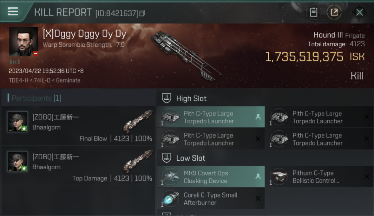 1 killmails for 1,735,519,375 total isk (csv)