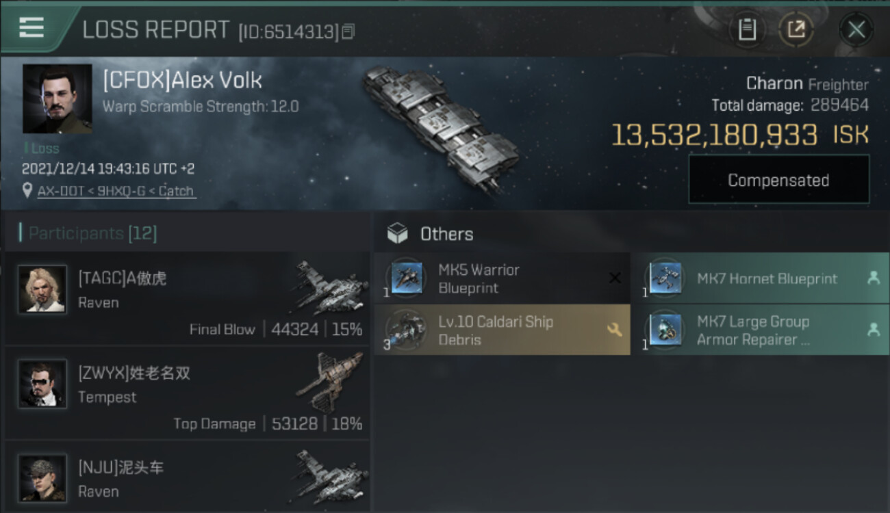 1 killmails for 13,532,180,933 total isk (csv)