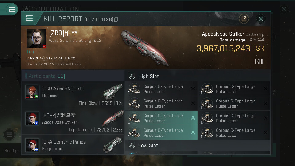 | K. corp | Killer | K. ship | K. class | V. corp | Victim | V. ship | V. class | System | Region | Isk | Date | Killmail |
