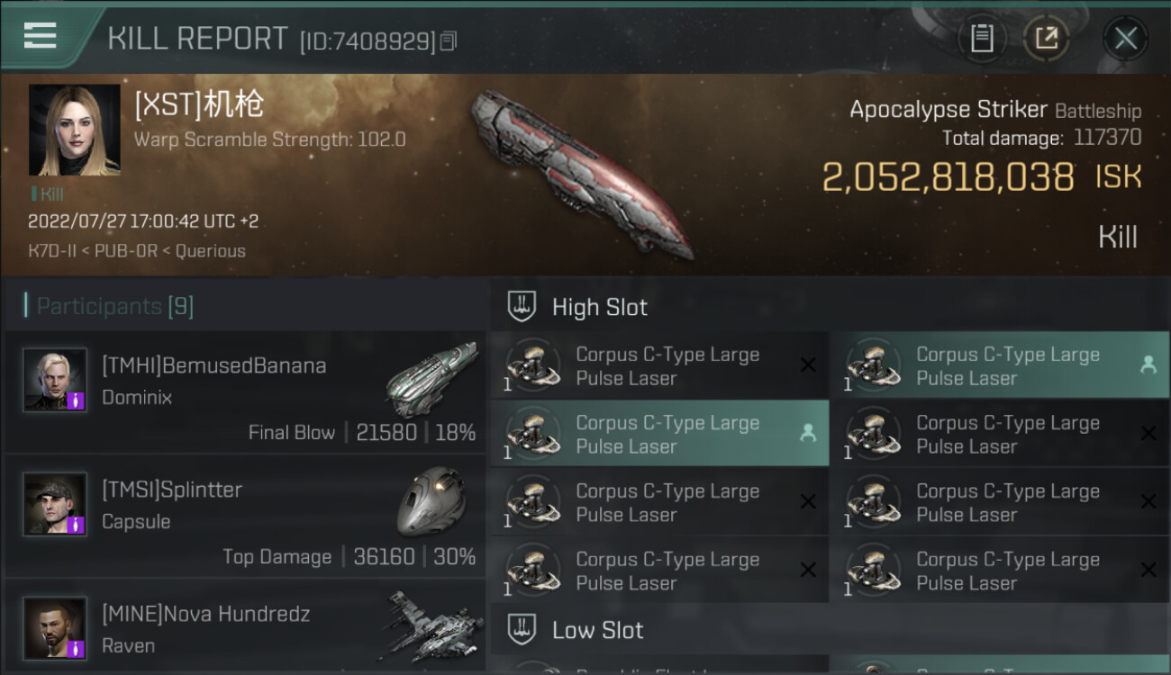 | K. corp | Killer | K. ship | K. class | V. corp | Victim | V. ship | V. class | System | Region | Isk | Date | Killmail |