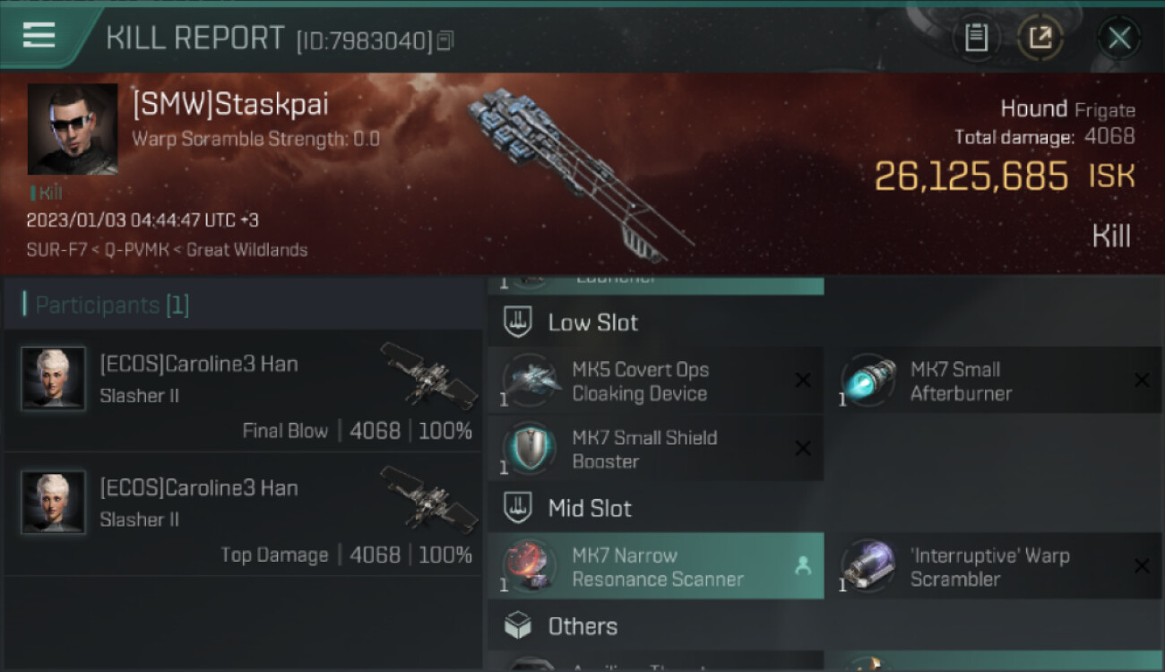 1 killmails for 26,125,685 total isk (csv)