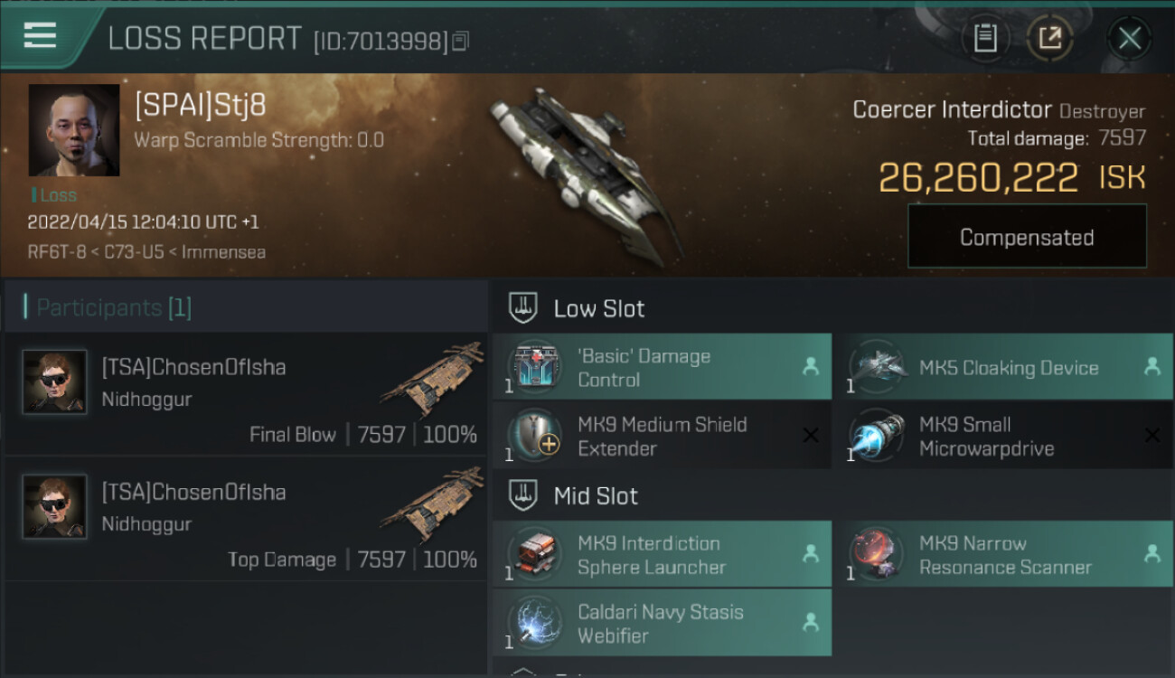 1 killmails for 26,260,222 total isk (csv)