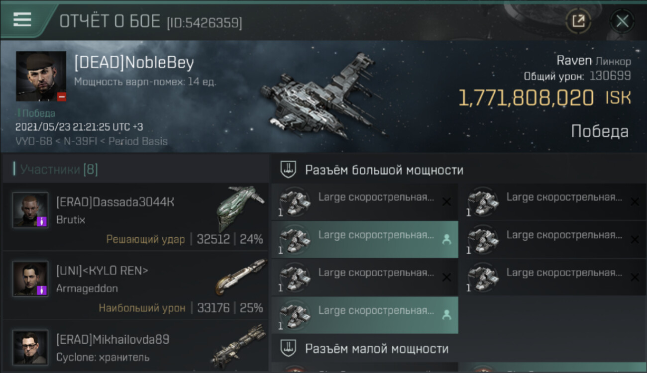 | K. corp | Killer | K. ship | K. class | V. corp | Victim | V. ship | V. class | System | Region | Isk | Date | Killmail |
