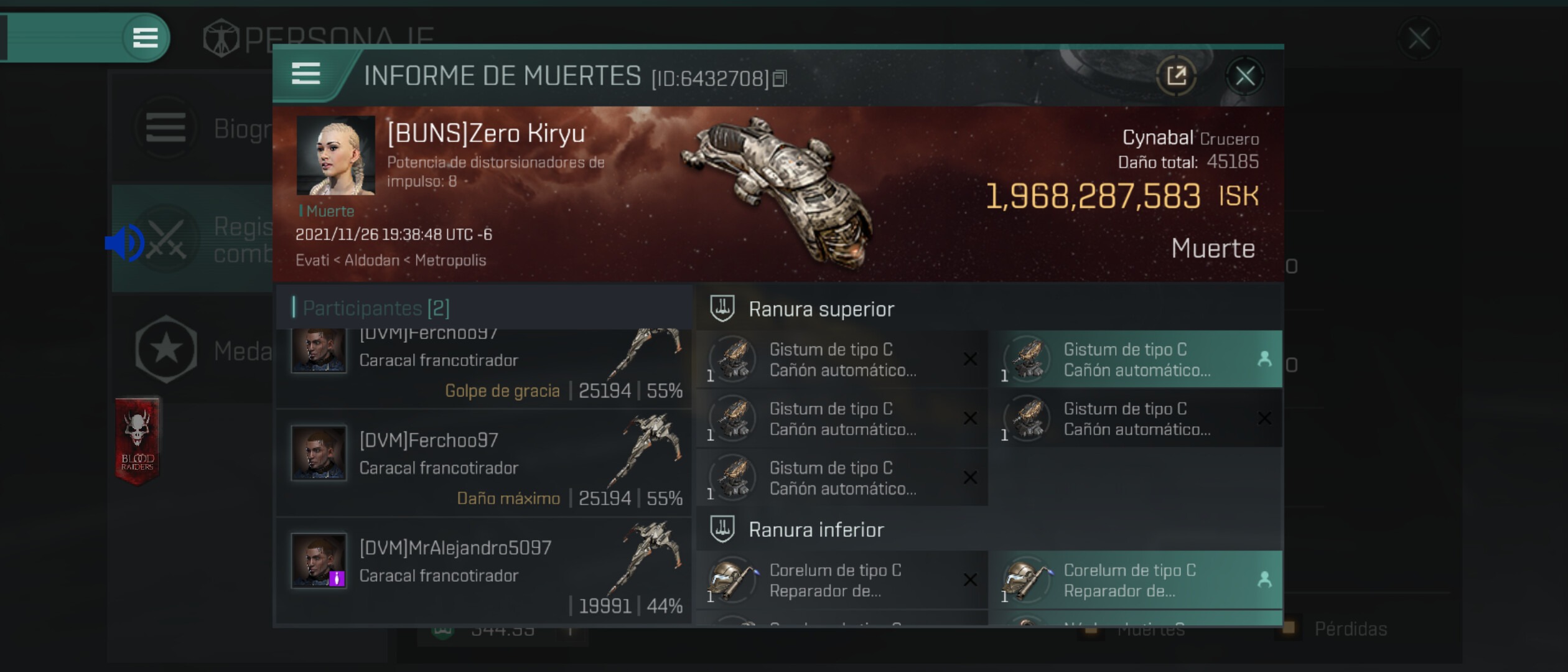1 killmails for 1,968,287,583 total isk (csv)