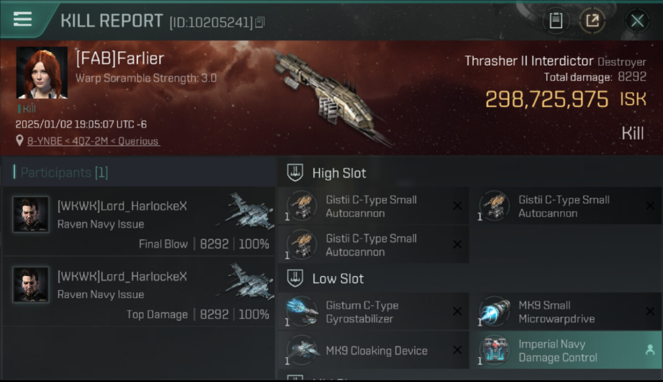 1 killmails for 298,725,975 total isk (csv)