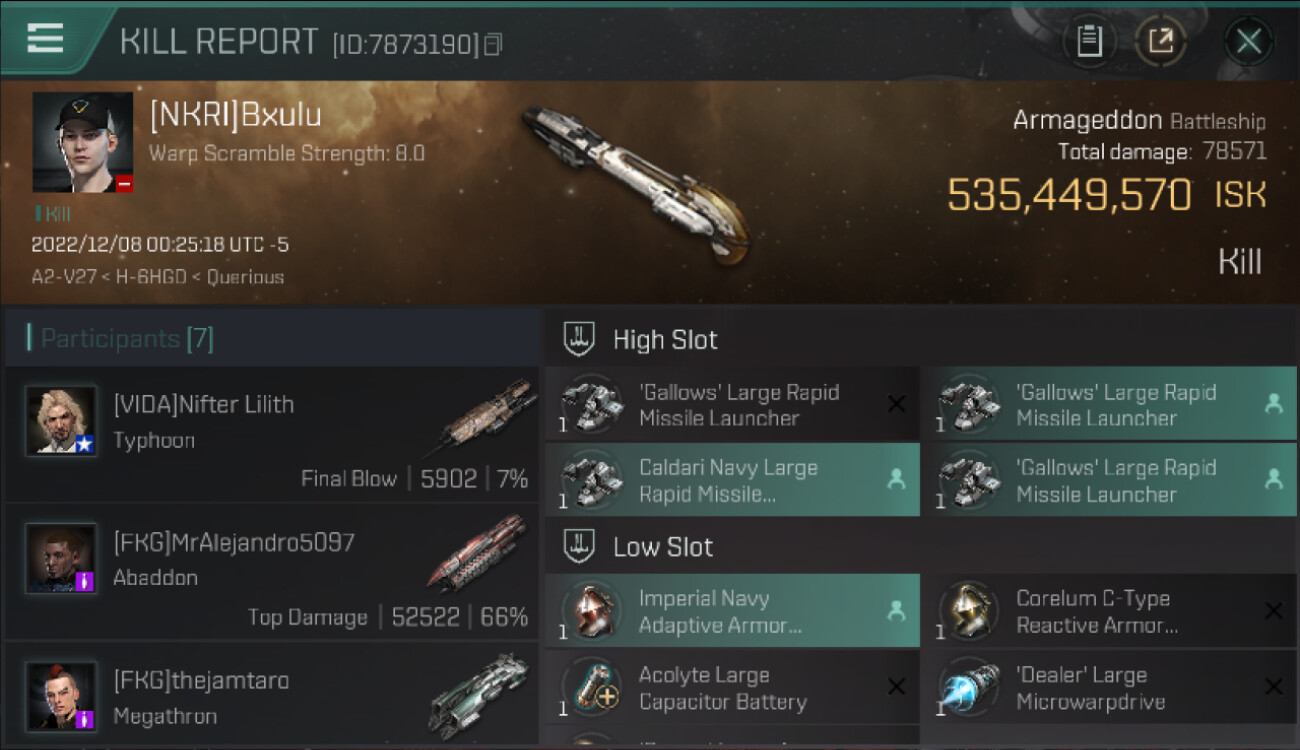 | K. corp | Killer | K. ship | K. class | V. corp | Victim | V. ship | V. class | System | Region | Isk | Date | Killmail |