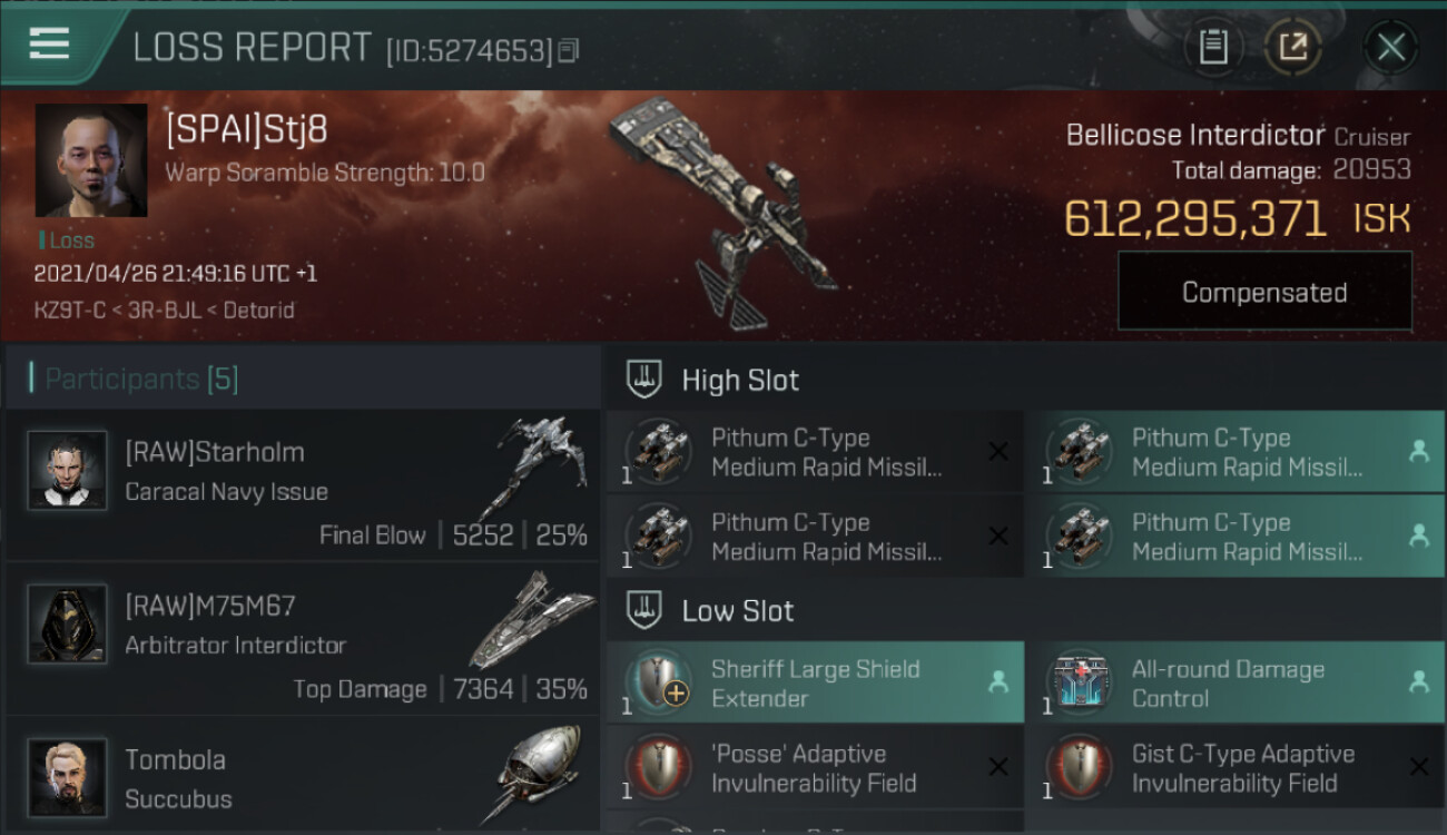 1 killmails for 612,295,371 total isk (csv)