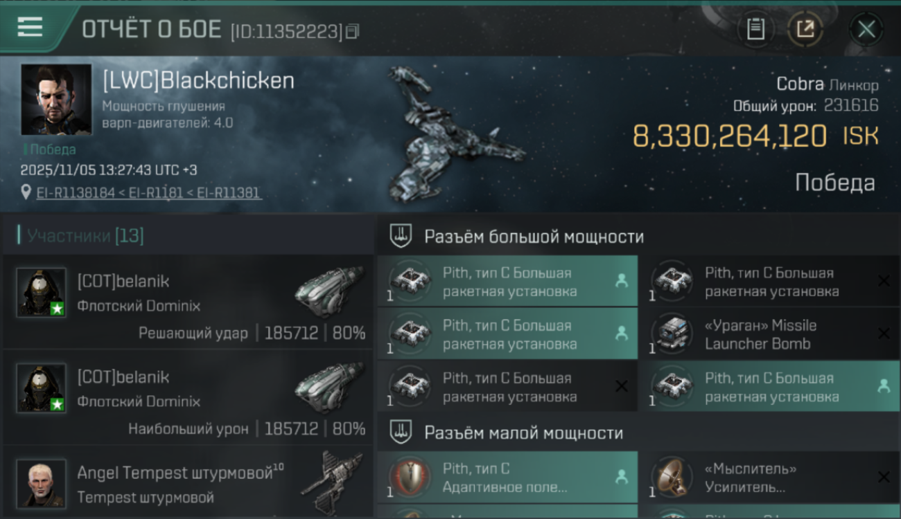 | K. corp | Killer | K. ship | K. class | V. corp | Victim | V. ship | V. class | System | Region | Isk | Date | Killmail |