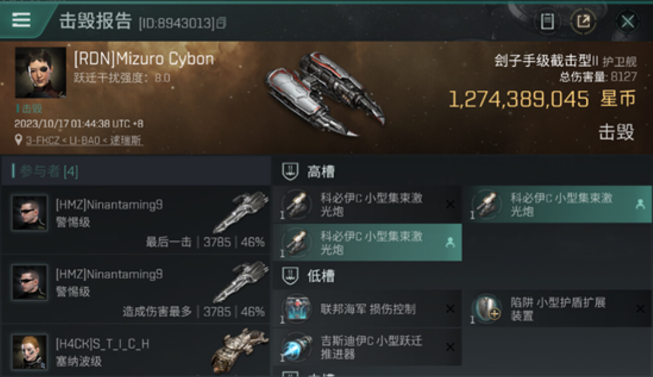 1 killmails for 1,274,389,045 total isk (csv)