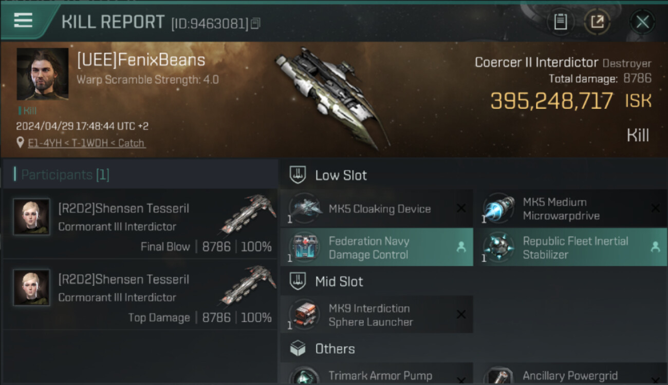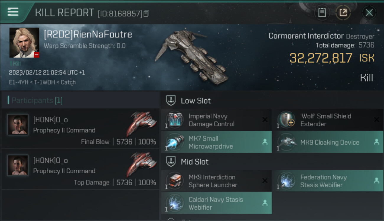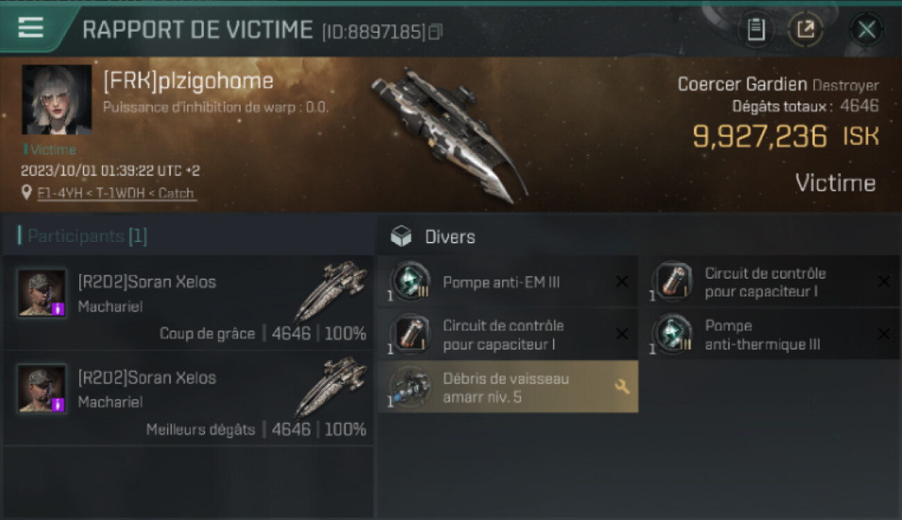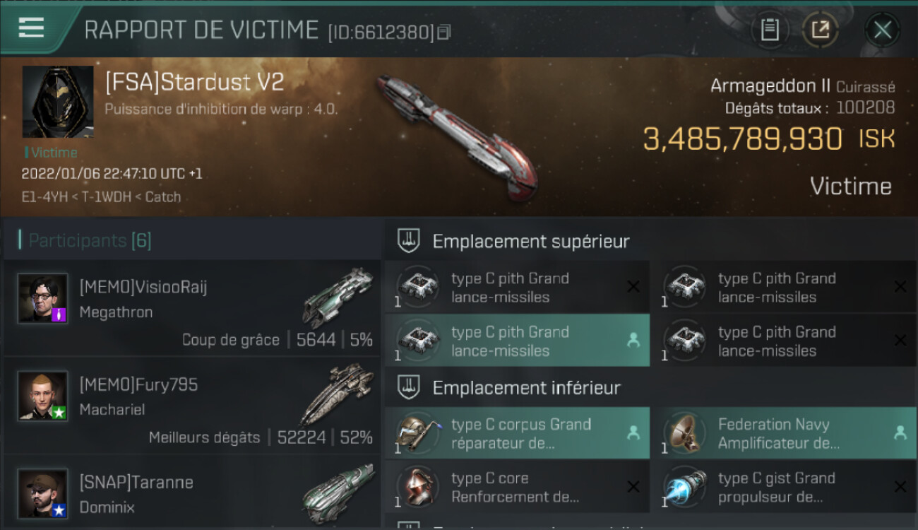 Puissance d'inhibition de warp : 8.0.