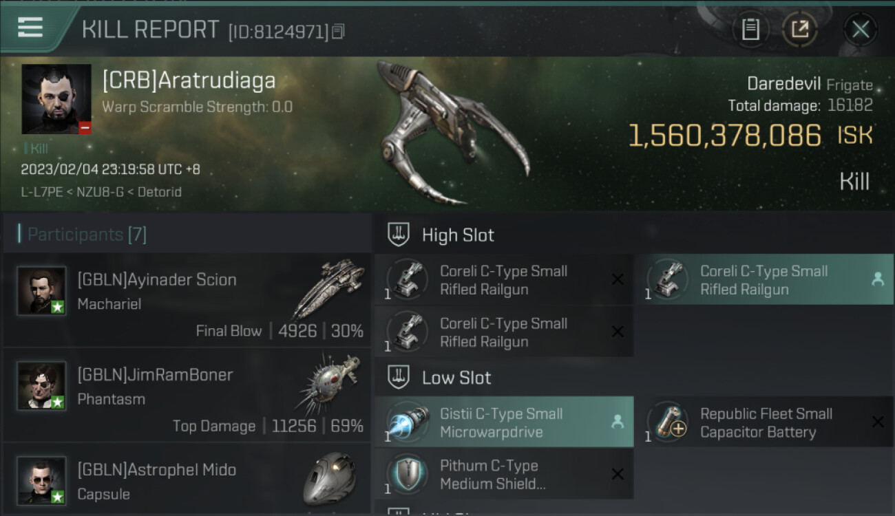 | K. corp | Killer | K. ship | K. class | V. corp | Victim | V. ship | V. class | System | Region | Isk | Date | Killmail |