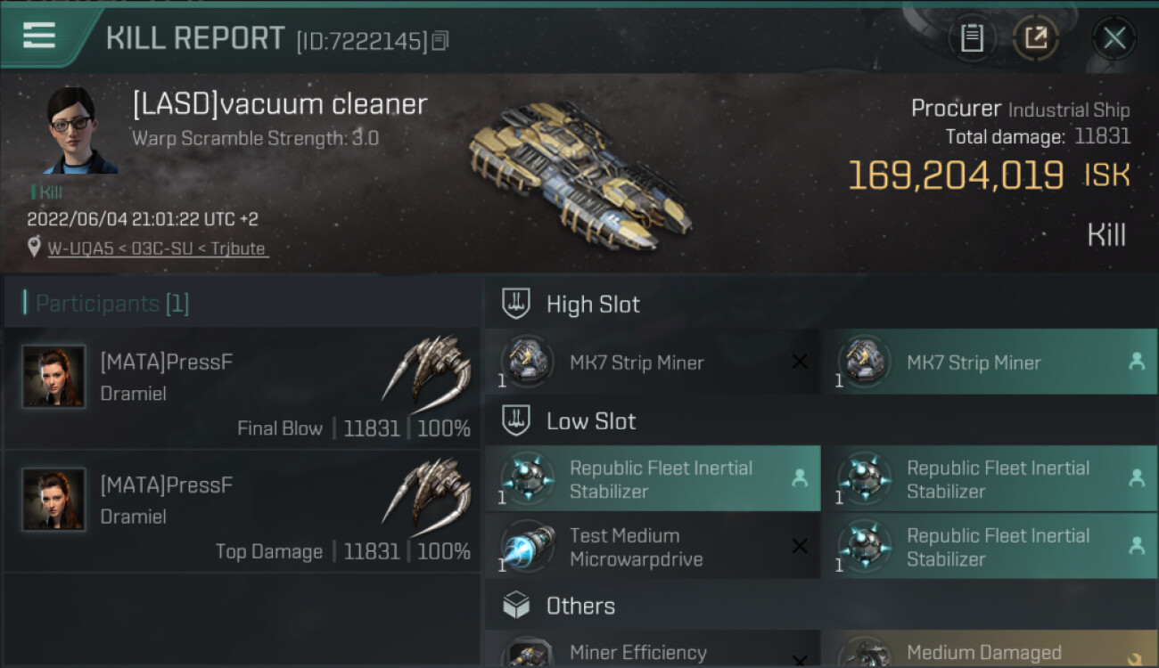 1 killmails for 169,204,019 total isk (csv)