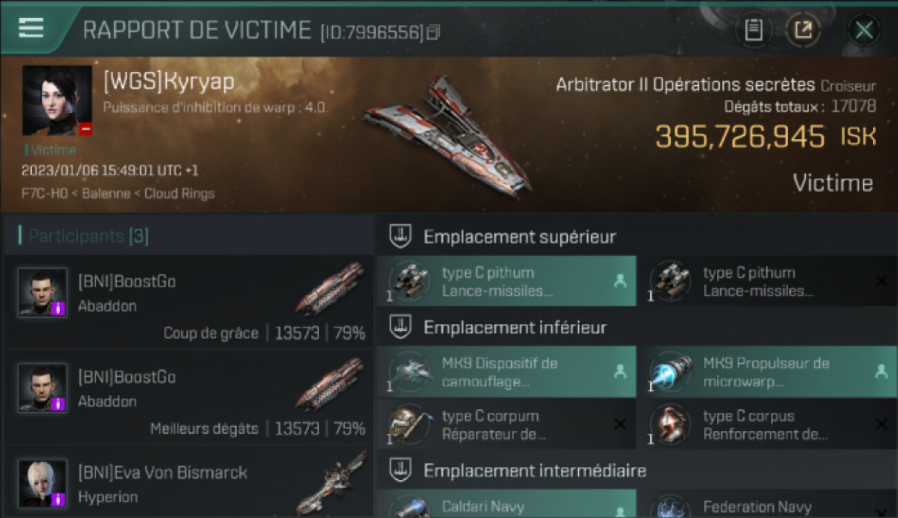 1 killmails for 395,726,945 total isk (csv)