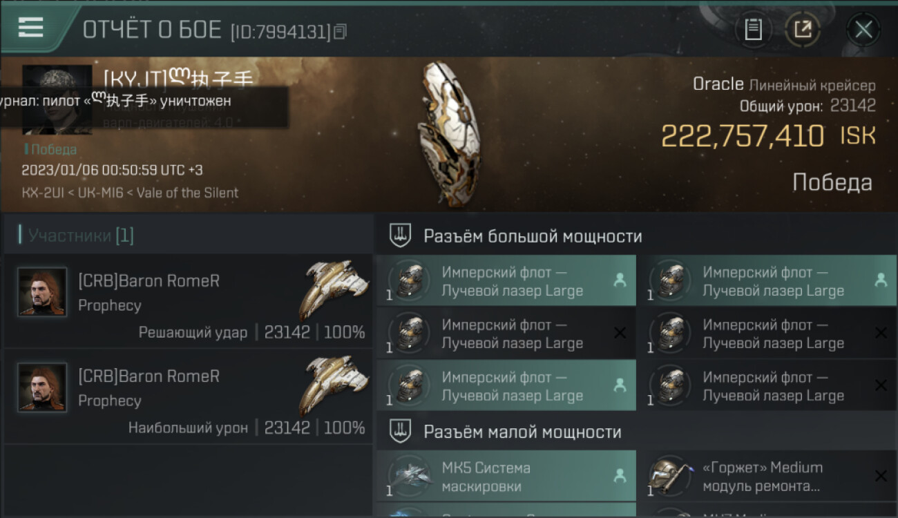 1 killmails for 222,757,410 total isk (csv)