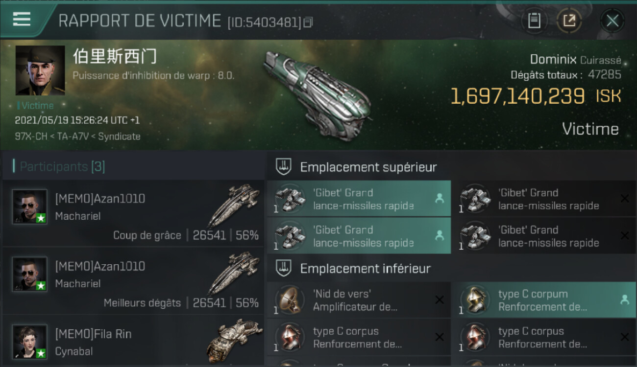 1 killmails for 1,697,140,239 total isk (csv)
