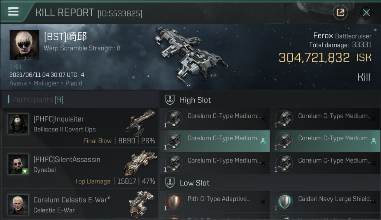 | K. corp | Killer | K. ship | K. class | V. corp | Victim | V. ship | V. class | System | Region | Isk | Date | Killmail |