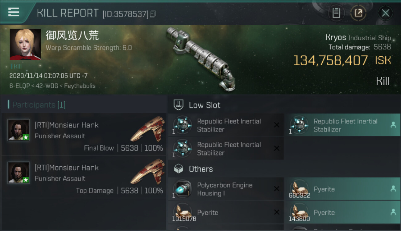1 killmails for 134,758,407 total isk (csv)
