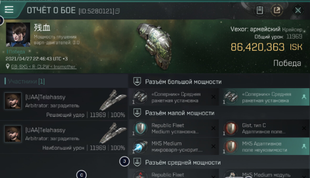 1 killmails for 86,420,363 total isk (csv)