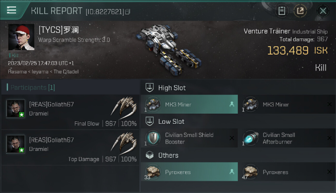 1 killmails for 133,489 total isk (csv)