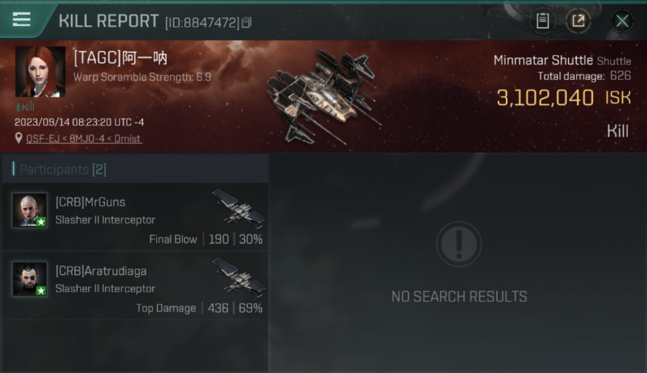 | K. corp | Killer | K. ship | K. class | V. corp | Victim | V. ship | V. class | System | Region | Isk | Date | Killmail |