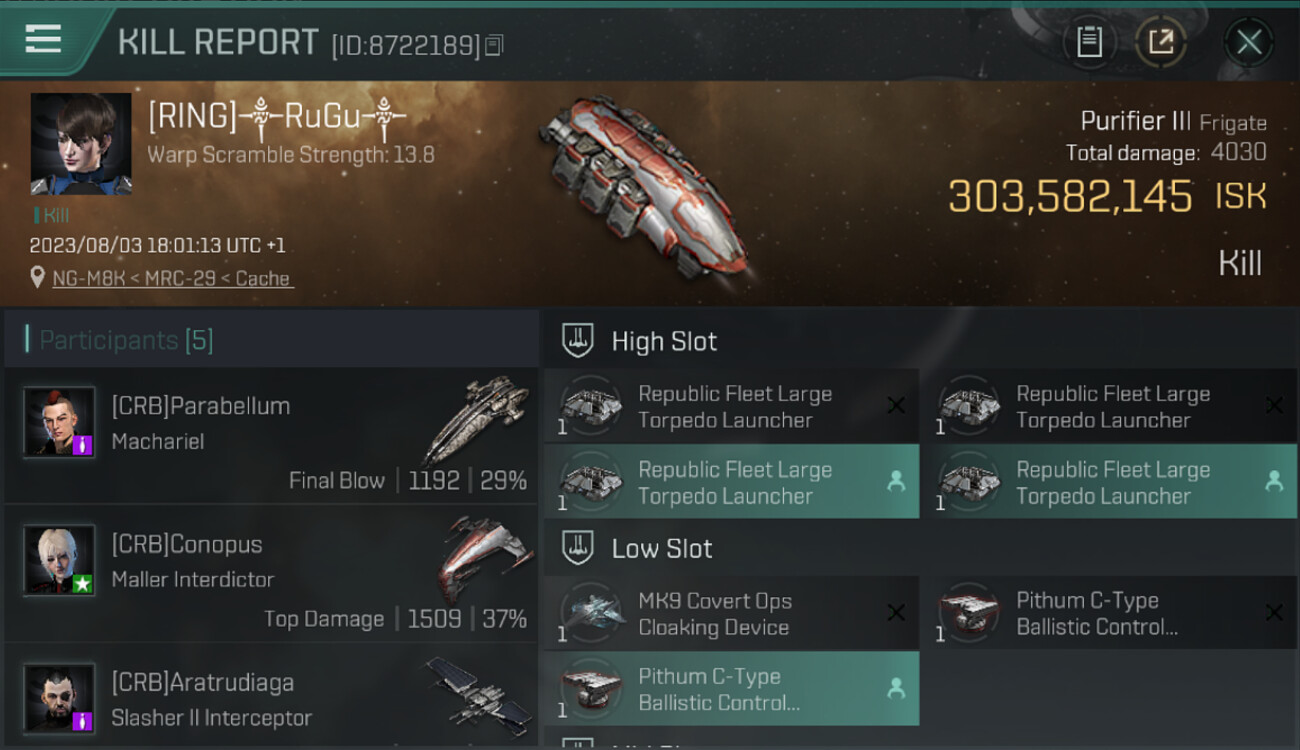 1 killmails for 303,582,145 total isk (csv)