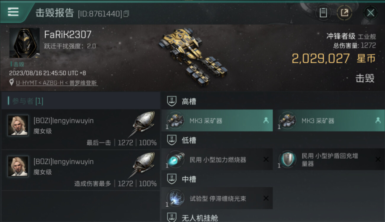 1 killmails for 2,029,027 total isk (csv)