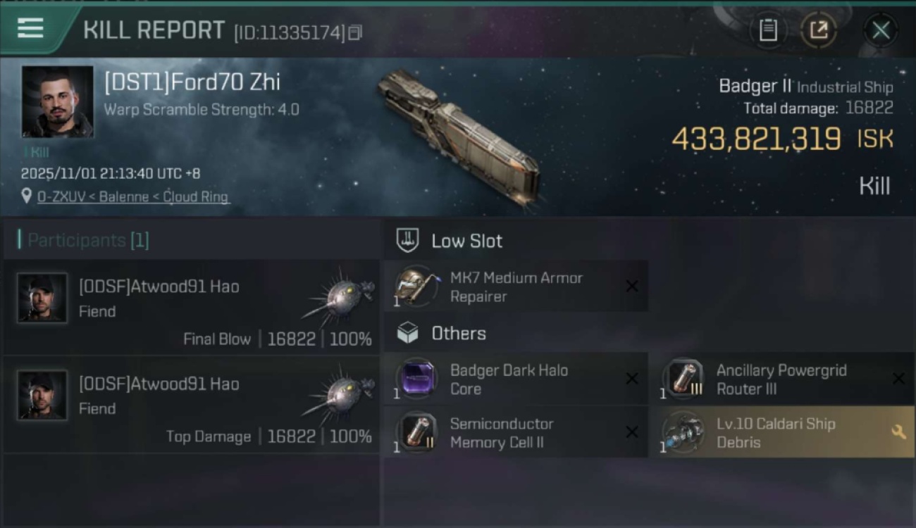1 killmails for 433,821,319 total isk (csv)