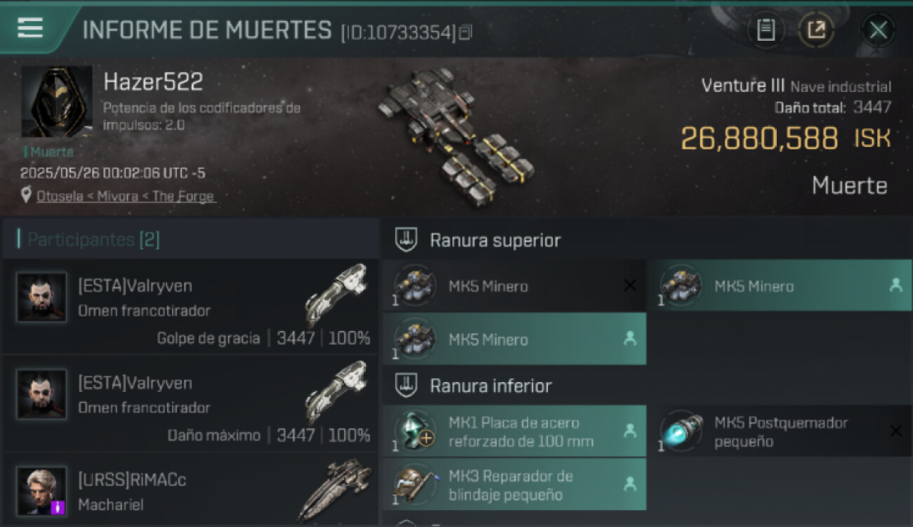 | K. corp | Killer | K. ship | K. class | V. corp | Victim | V. ship | V. class | System | Region | Isk | Date | Killmail |