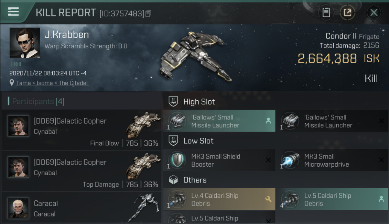 1 killmails for 2,664,388 total isk (csv)