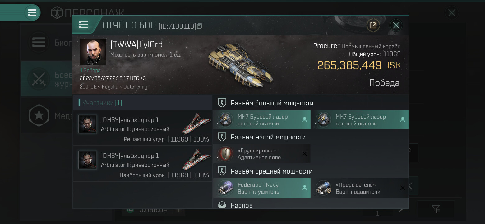 1 killmails for 265,385,449 total isk (csv)