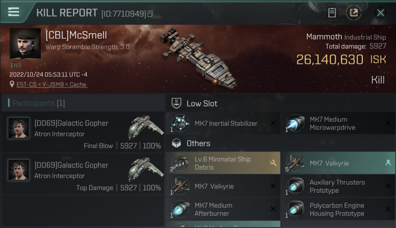 1 killmails for 26,140,630 total isk (csv)