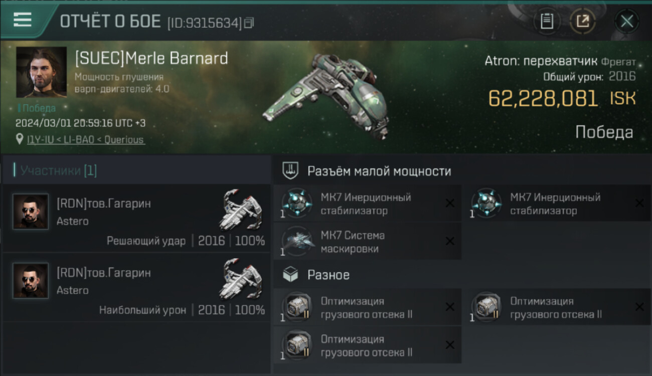 1 killmails for 62,228,081 total isk (csv)