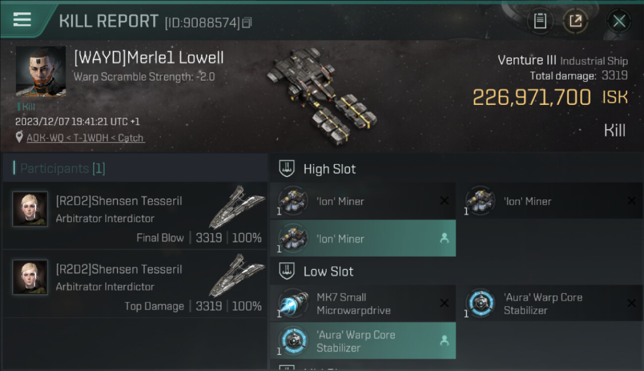 1 killmails for 226,971,700 total isk (csv)