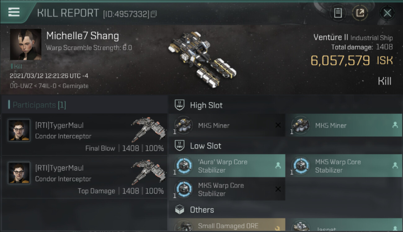 1 killmails for 6,057,579 total isk (csv)