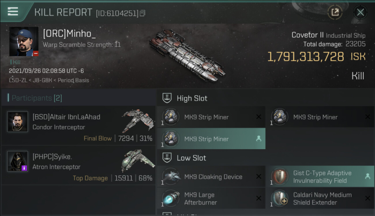 | K. corp | Killer | K. ship | K. class | V. corp | Victim | V. ship | V. class | System | Region | Isk | Date | Killmail |
