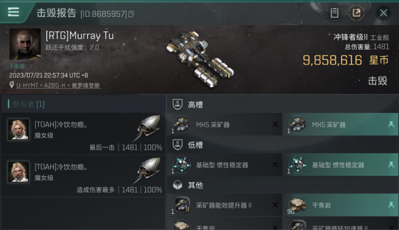 1 killmails for 9,858,616 total isk (csv)