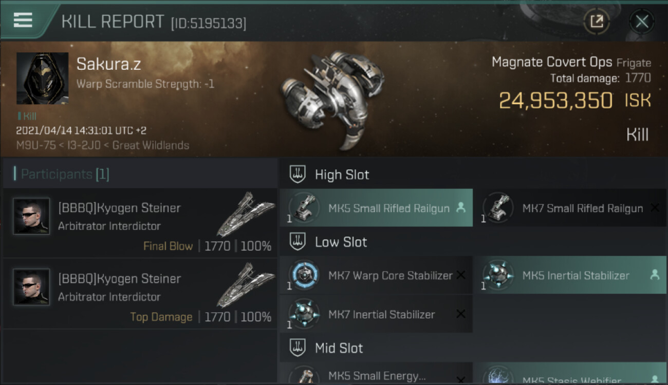 1 killmails for 24,953,350 total isk (csv)