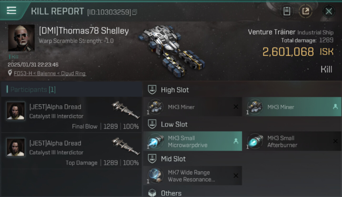 1 killmails for 2,601,068 total isk (csv)