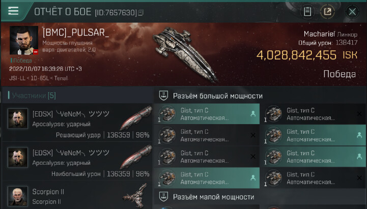 | K. corp | Killer | K. ship | K. class | V. corp | Victim | V. ship | V. class | System | Region | Isk | Date | Killmail |