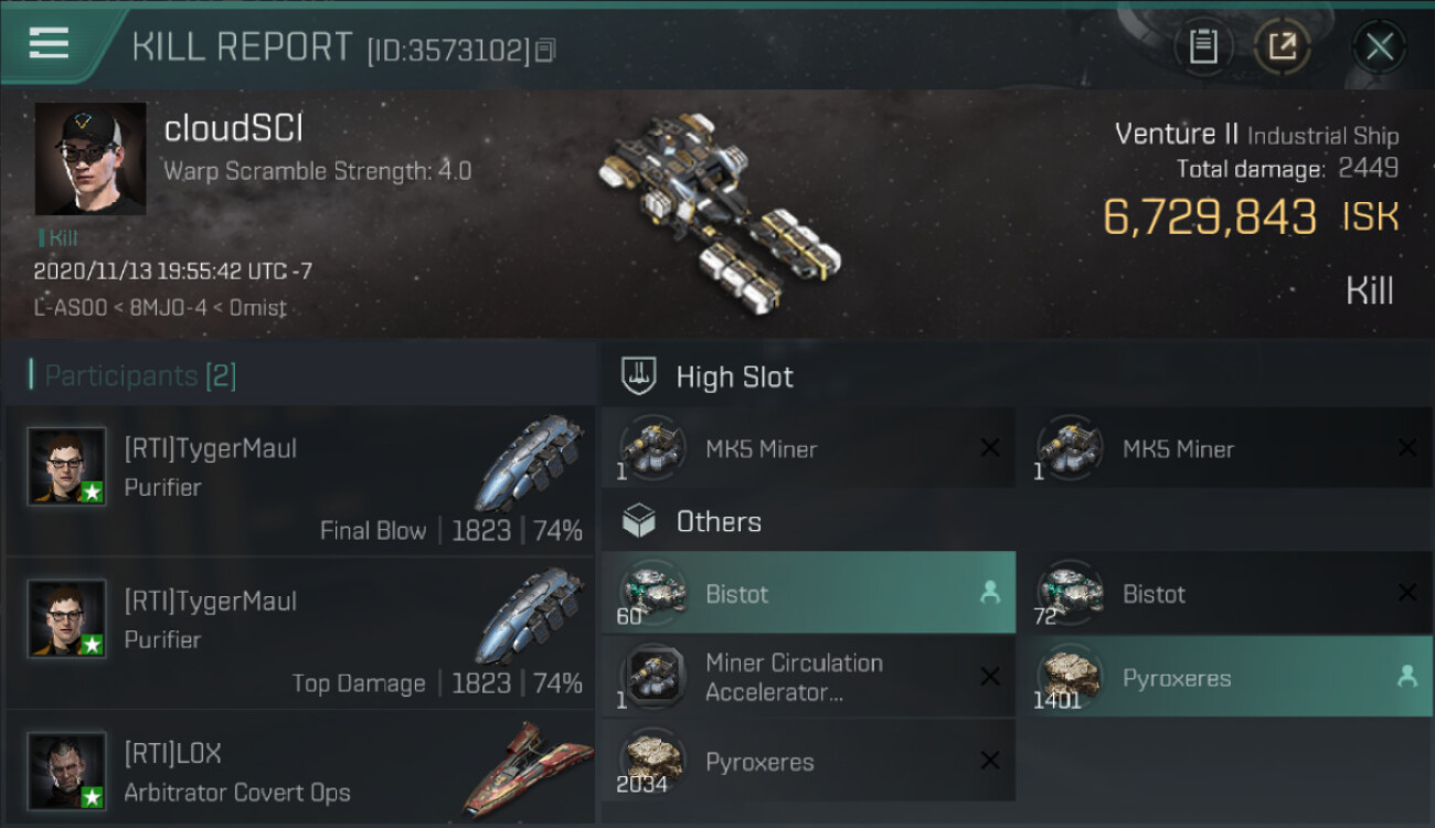 1 killmails for 6,729,843 total isk (csv)