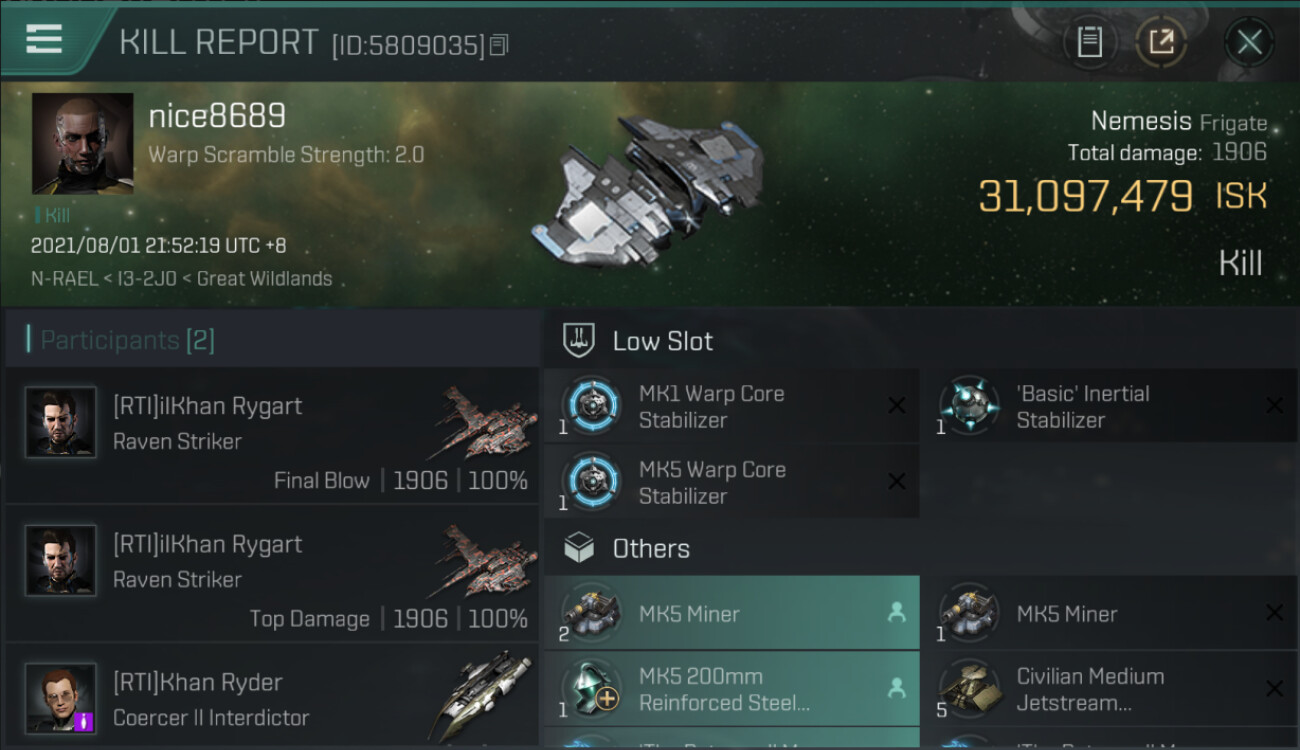 1 killmails for 31,097,479 total isk (csv)