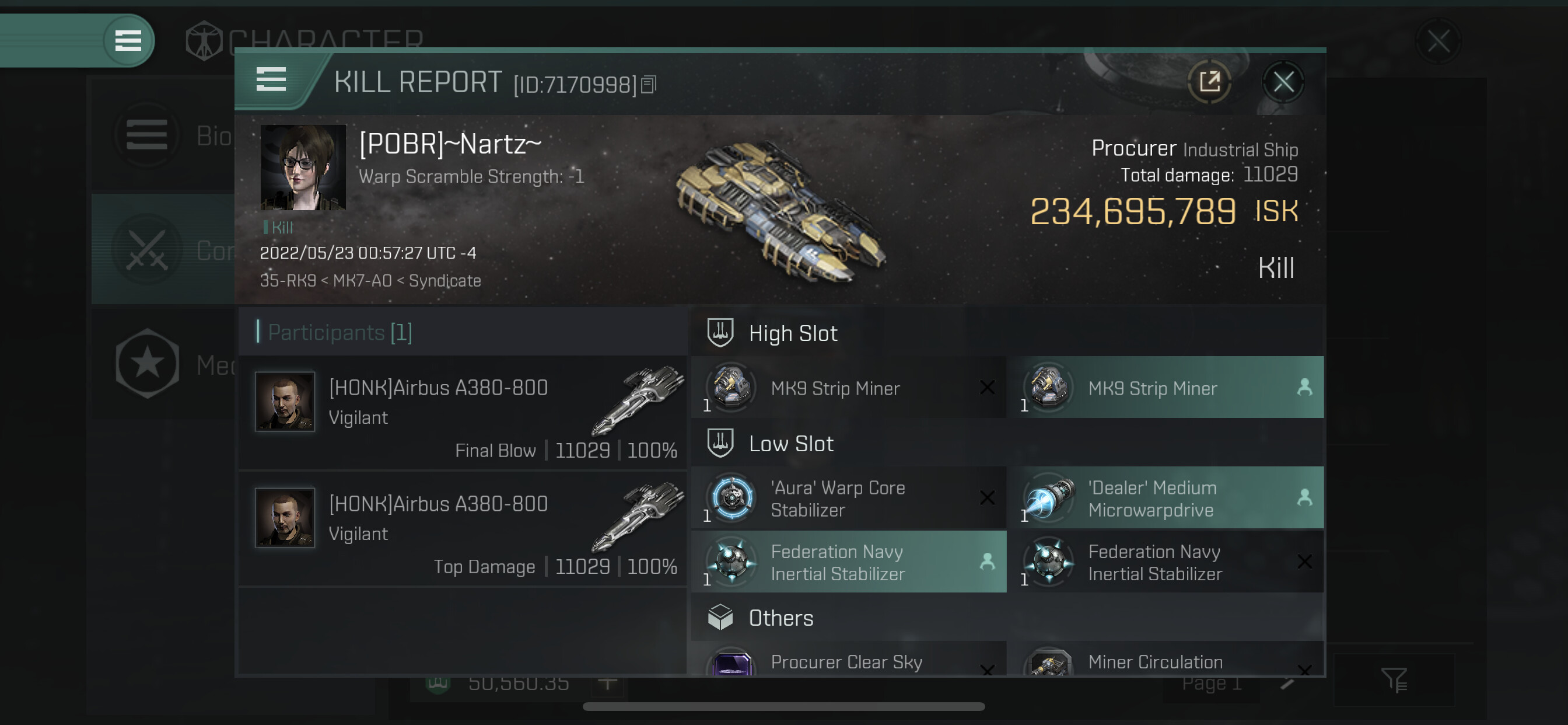 1 killmails for 234,695,789 total isk (csv)